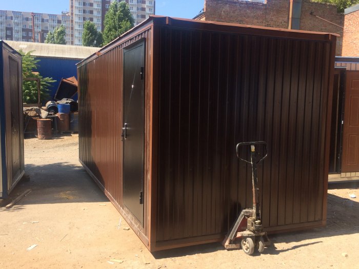 Дом из блок-контейнера, коричневый профнастил